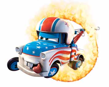 Mater used to be a daredevil who attempted all kinds of death-defying stunts! He once “jumped” a line of 20 cars, was shot out of a cannon, and leapt through a ring of fire. His most daring stunt was jumping across Carburetor Canyon. Lightning McQueen showed up to help Mater complete the stunt.