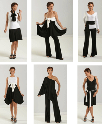 The Chick on the Go Kits ($199) were created for the traveler or busy woman in mind. You can easily have an entire wardrobe at your fingertips since each kit has 5 garments and 2 accessories that are pre-packed in a decorative cosmetic sized case. The garments that are included are black wide leg pants, white tank top, black slip dress, black poncho (can be donned as a skirt or top), and white long-sleeved v-neck top. The accessories are two sashes (black and white) that can easily be worn as a belt, scarf, or a headband. This enables you to be fashionably creative since you can easily create a plethora of different outfits that are perfect for travel, a night out, sophisticated social events, casual dining, a date, lounge wear, or work. I love that this on-the-go wardrobe complements all body types and that there are no buttons or zippers involved. Each piece is made with a rayon spandex fabric blend, which allows for stretch and comfortableness.