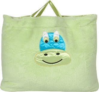 My son was the proud recipient of the Grassy Green Dinosaur Napbag ($70) that OC Daisy generously sent me to review. I was immediately