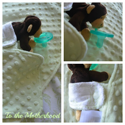 One of my favorite features is the fabric hook with the industrial snap, which is great for attachments, such as a pacifier or toys. It won’t hinder the baby from getting the comfort that they need, though. Also, the snap enables the binky and blanket to come apart, so both can be washed separately.