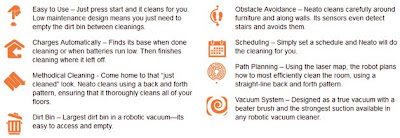 • Neato uses a laser-distance system, giving mapping information that shows characteristics of a room (e.g. where the walls are, where furniture, and other objects are located). Don’t underestimate its intelligence, because it is constantly updated the map for any changes that could take place while it’s vacuuming.